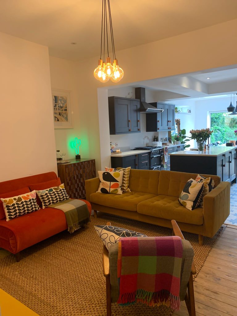 The single-story rear extension we delivered has transformed the space, creating a luminous, expansive kitchen, living, and dining area for our clients to enjoy. Enhanced by two lantern lights, this new addition breathes fresh life into their home, marking a significant turnaround from the difficulties they faced before.